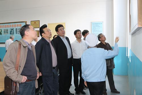 | 4月12日,省決咨委城鎮(zhèn)化組組長、省水利廳原廳長譚策吾一行來集團(tuán)公司調(diào)研參觀。在市發(fā)改委主任李忠平、集團(tuán)公司黨委書記、董事長范振華的陪同下,調(diào)研組一行參觀了集團(tuán)公司一分廠生產(chǎn)現(xiàn)場及夢桃之家。