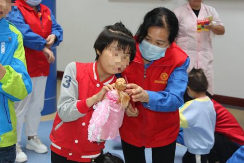 志愿者們或抱起可愛的孩子,和他們說話,或圍成半圓形,和他們對(duì)拍皮球、或蹲坐在地上,給他們講故事,接過他們手中的芭比娃娃,教他們梳理頭發(fā)......,孩子們歡快幸福的模樣,不斷觸動(dòng)著志愿者的心靈。