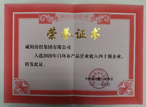 (入選2020年白坯布產(chǎn)品營業(yè)收入四十強(qiáng)企業(yè))