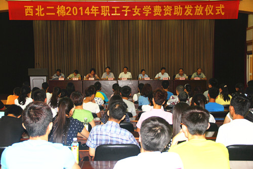 咸陽(yáng)紡織集團(tuán)下屬企業(yè)西北二棉舉行2014年考入大學(xué)本科學(xué)習(xí)的職工子女學(xué)費(fèi)資助發(fā)放儀式