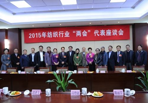 3月4日,紡織行業(yè)的代表委員們“回娘家”,參加由中國(guó)紡織工業(yè)聯(lián)合會(huì)召開(kāi)的“2015年紡織行業(yè)‘兩會(huì)’代表委員座談會(huì)”,中國(guó)紡織工業(yè)聯(lián)合會(huì)會(huì)長(zhǎng)王天凱對(duì)代表委員們?yōu)樾袠I(yè)發(fā)展出謀劃策、積極獻(xiàn)聲表示感謝,代表委員們也就各自所在的分行業(yè)情況及本次參會(huì)的主要議案、提案做了交流。